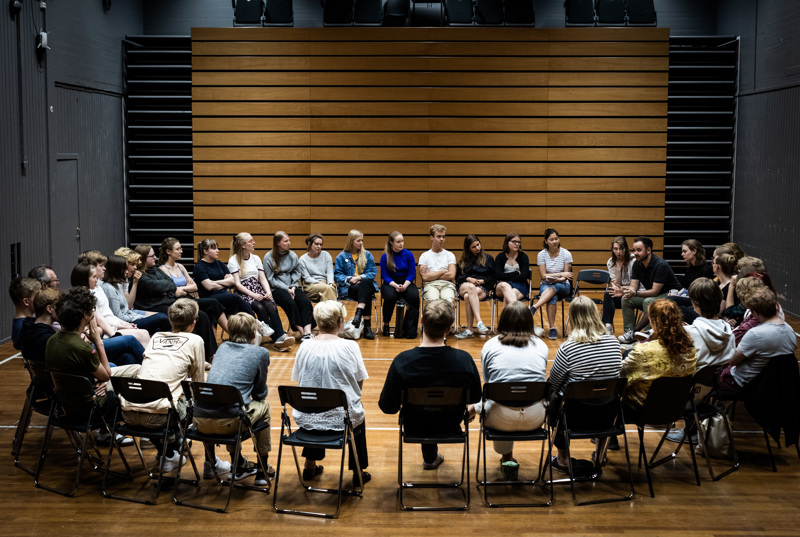 En samtale om musikerens rolle i orkesteret fra fjorårets samling. I år blir det minst en meter mellom deltakerne. Foto: Magnus Skrede