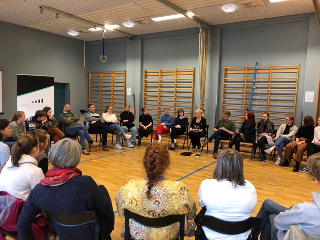 Under gårsdagens høstsamling var blant annet Crescendo-deltaker Johan Dalene tilstede for å dele erfaringer og snakke om sin opplevelse av å spille med verdensledende orkestre. Prosjektleder Anders Hall Grøterud var ordstyrer.