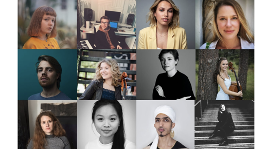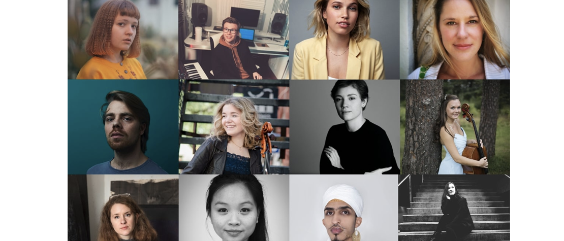 Bilde av talentene: Øverst f.v. Margrete Bergset, Torje Fagertun Spilde, Thea Sofie Loch Næss og Mie Gjersen Hansen. I midten f.v. Heiki Riipinen, Birgitta Oftestad, Inés Belli og Sandra Lied Haga. Nederst f.v. Idun Baltzersen, Catharina Vu, Ahmed Uhmar og Sonoko Miriam Welde.
