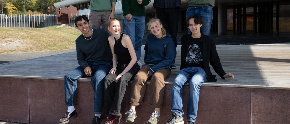 På bildet: Unge fotografer 2021/2022: Bak fra venstre: Markus Falao, August Reece, Olav Hylland og Farhad Soufi. Foran fra venstre: Mateo Tilrem, Katja Berg – Høyem, Mathilde Movik Lindstad og Michael Tvedt. Deltaker Alma Edit Hauge var ikke til stede da bildet ble tatt. Foto: Camilla Sune